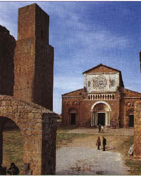A km. 24 da Viterbo, situata su un ripiano di tufo all’inizio della Maremma Viterbese Tuscania accoglie il visitatore che giunge da Viterbo con il colle di S. Pietro, il simbolo stesso della cittadina. Qui si trovano infatti resti risalenti al periodo etrusco e romano, ma soprattutto le splendide chiese romaniche di S. Pietro e S. Maria Maggiore, i monumenti romanici più significativi del Viterbese. La maestosa chiesa di S. Pietro (XI - XIII sec.) con la facciata, riccamente decorata, l’imponente abside fortificata e il severo interno e la suggestiva cripta rappresenta una vera e propria sintesi dell’architettura romanica. Di non minore interesse è la chiesa di S.Maria Maggiore, la più antica cattedrale della città, sulla cui facciata motivi decorativi di diversa origine creano un insieme unico. Armonioso e vasto l’interno impreziosito da capitelli dalle bizzarre sculture. Non si può però lasciare Tuscania senza aver visitato il centro storico protetto dalle mura in tufo. È infatti un vero e proprio quartiere-museo caratterizzato da palazzi aristocratici, vicoli , archi e antiche chiese come S. Maria della Rosa, capolavoro dell’arte romanica, oppure il Duomo di S. Giacomo con all’interno un pregevole polittico di Andrea di Bartolo. Di particolare interesse infine il Museo Archeologico (ingresso gratuito), allestito nel complesso rinascimentale di S. Maria del Riposo. Al suo interno sono esposti raffinati sarcofagi e altri reperti provenienti dalle necropoli etrusche del territorio comunale.